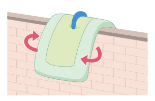 直射日光が当たると布団が日焼けして傷んでしまうので、カバーやシーツをつけたまま干します。